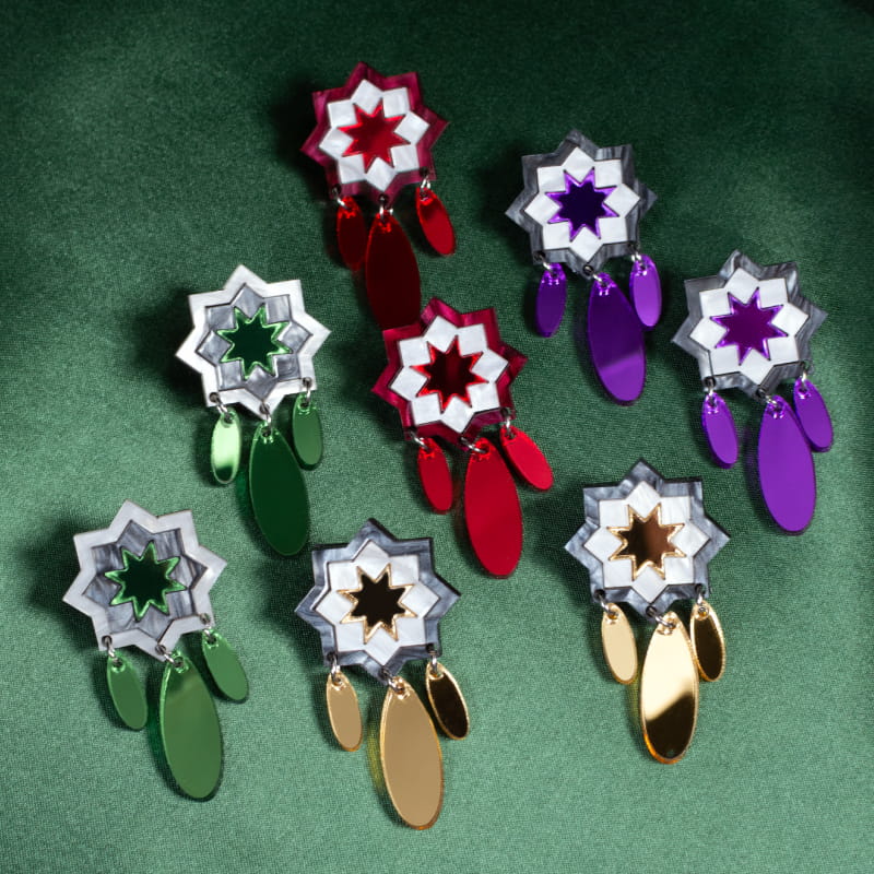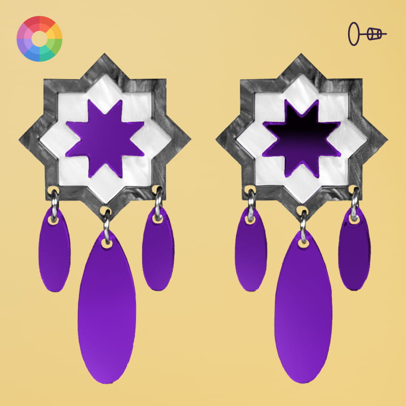 Los Pendientes Flamenca Andalusí están adornados con detalles ornamentales que evocan los patrones geométricos y florales de la cultura andaluza. Su diseño elegante, con toques de arte tradicional, ofrece un equilibrio perfecto entre modernidad y tradición flamenca.