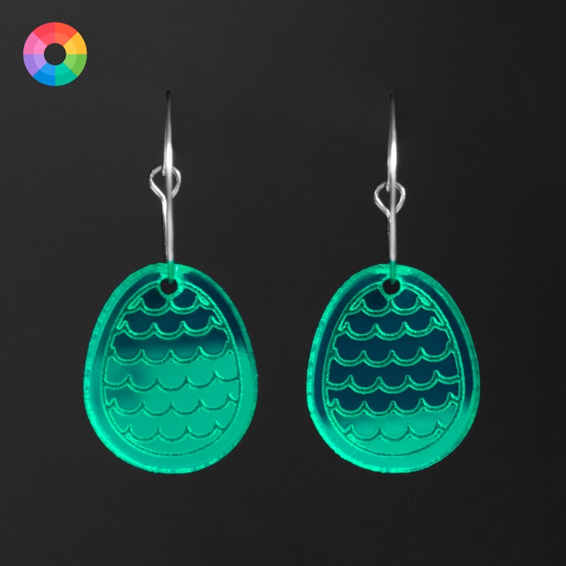Los Pendientes Huevos de Dragón están meticulosamente elaborados con acrílico espejo de alta calidad, lo que les confiere un brillo espectacular y una apariencia elegante. Cada color representa a cada uno de los dragones que nacen de ellos en la saga. Estos pendientes no solo destacan por su diseño, sino también por la historia que evocan.