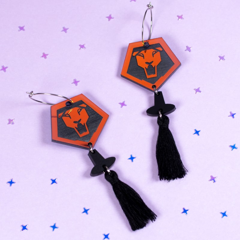 Con los Pendientes Saja Boys no solo adornas tu outfit: proyectas una vibra magnética, con el misterio del negro holográfico y la elegancia del sombrero como protagonistas.