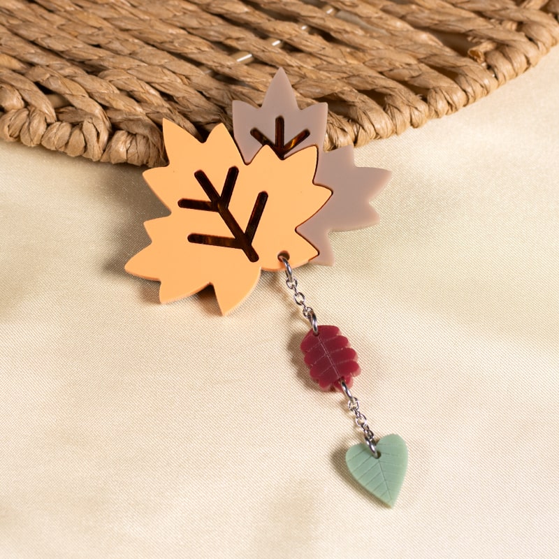 La Pinza Otoño está formada por hojas caducas 🍂 que evocan la caída de las hojas en esta estación, creando un diseño lleno de movimiento y frescura. Además, de ella cuelgan 2 hojas adicionales 🌿, que añaden dinamismo y un efecto encantador cada vez que el cabello se mueve. Sus tonos otoñales en colores pastel suaves —naranja, marrón claro, verde oliva y burdeos— hacen que sea un accesorio fácil de combinar, ideal para estilos casuales, románticos o bohemios.